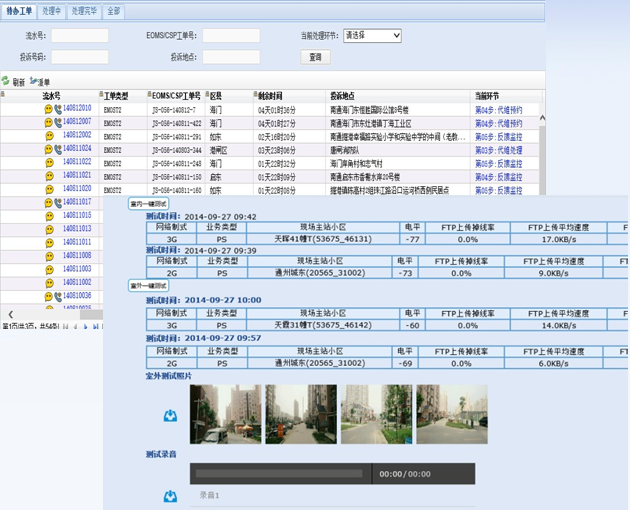 平臺(tái)側(cè)采用企業(yè)級標(biāo)準(zhǔn)的J2EE平臺(tái),瀏覽器訪問,還有比這更方便的嗎?后臺(tái)人員分角色處理投訴工單,一步一步向前走(當(dāng)然也可回退哦),達(dá)到工單流程化處理,再也亂不了啦;全網(wǎng)工參、規(guī)劃站、投訴點(diǎn)信息都可以在GIS上關(guān)聯(lián)展示,還有關(guān)鍵KPI和告警信息實(shí)時(shí)查詢,全面協(xié)助,真的是要啥有啥,再發(fā)現(xiàn)不了問題,您找我!最后一個(gè)重磅炸彈:用戶投訴號碼信令信息追溯分析,更深入地解決投訴問題,VIP投訴也是小CASE了。