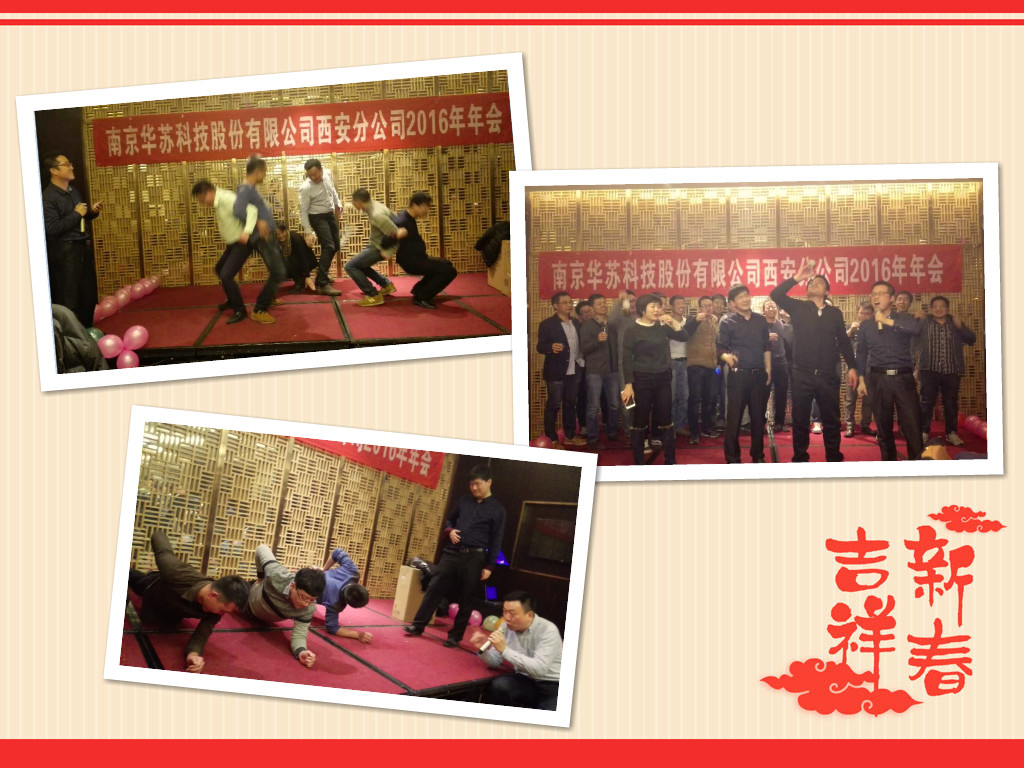 繼華蘇福建分公司年會之后,近日,華蘇西安分公司2016年年會也風風火火地拉開了帷幕。伙伴們滿載著期盼相聚,舉杯相祝、豪情滿懷。回首過去,有太多的難忘和不舍,面對未來,他們也將用自己的行動收獲更多的喜悅。