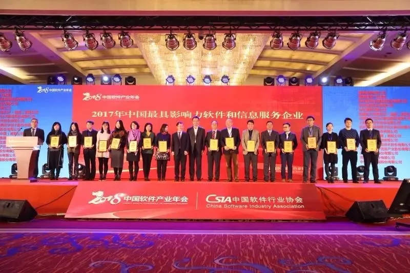 “2018中國軟件產業年會”由中國軟件協會舉辦,以“軟件,驅動智能的力量”為主題。聚焦年度軟件產業發展 的新技術、新業態、新模式,邀請知名院士、權威專家和資深人士共同探討軟件和信息技術服務的未來發展趨勢和態勢,綜合考量企業的技術創新力、商業模式創新能力、企業品牌細分領域、地域和社會影響力等因素,評定并發布了“2017年最具有影響力軟件和信息服務企業”名單。該年會作為2017年軟件領域的收官之作及2018年的開局盛典在業內具有深刻影響力,評定結果備受矚目。