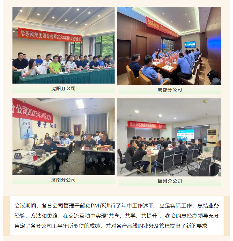 近日,華蘇科技 各分公司陸續(xù)召開半年工作會議,全面審視上半年經(jīng)營情況,明確下半年工作目標(biāo),