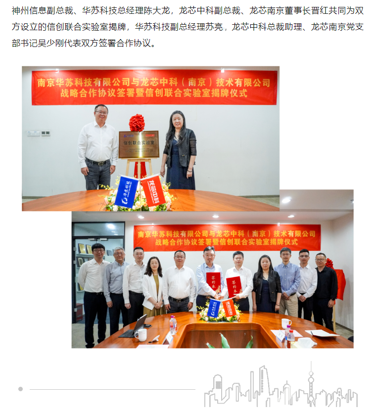 華蘇科技與龍芯中科舉行戰略合作簽約暨信創聯合實驗室揭牌儀式
