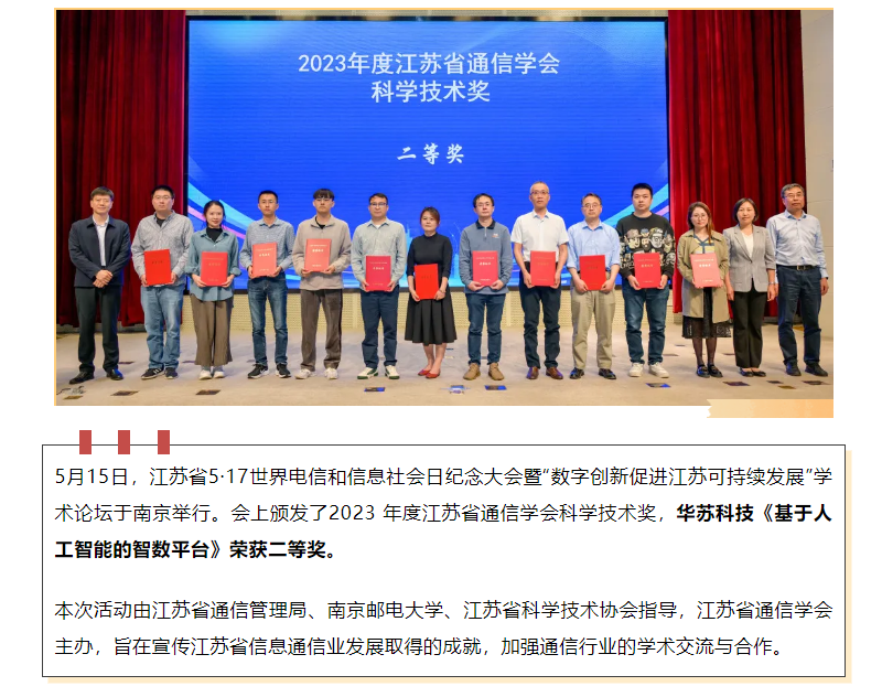 華蘇科技榮獲2023年度江蘇省通信學會科學技術獎二等獎
