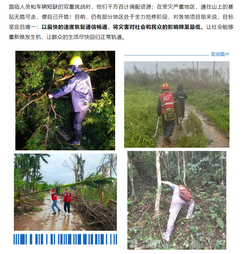 他們以高度的責任感和使命感,為通信網絡的災后重建貢獻力量,贏得了客戶的贊譽和表彰。