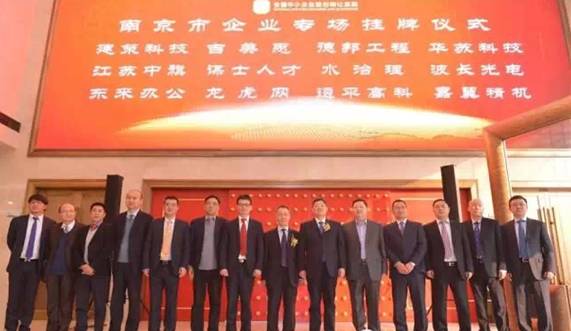 2015年1月13日上午九時,由南京市委組織部、金融辦主辦的南京市地方企業專場掛牌儀式在北京隆重舉行,南京12家優秀企業領導盛裝出席,共赴現場,一齊敲響掛牌寶鐘,當悅耳的鐘聲響徹耳際,也就預示著這12家企業正式加入了全國股轉系統的大家庭,而南京華蘇科技股份有限公司(證券代碼:831180