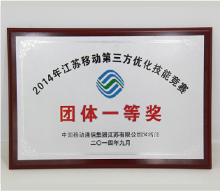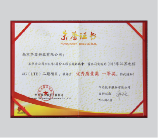2014年江蘇電信4G(LTE)二期項目“優(yōu)秀質(zhì)量獎 一等獎”