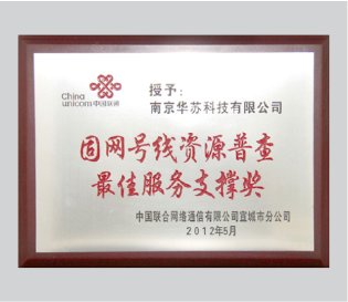 2012年度固網(wǎng)號線資源普查最佳服務(wù)支撐獎